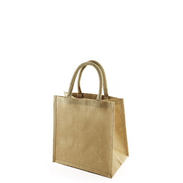Green & Innocent laminated natural jute bag Features gusset and short cotton cord handles