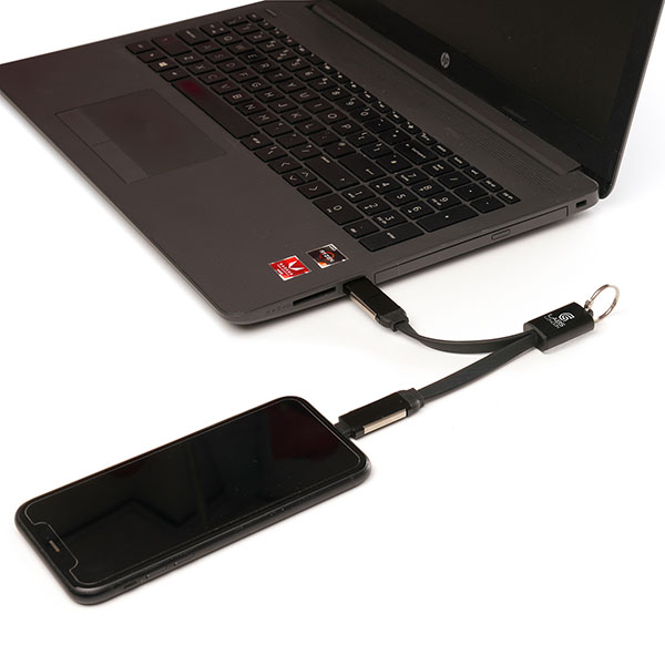 4 in 1 fast charger key ring Fast charge cable Combi USB-C / USB-A to USB-C / Lightning connectors